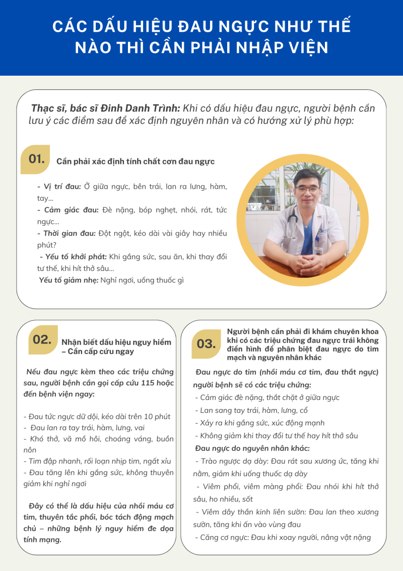 PV. Bác sĩ có thể cho biết với các dấu hiệu đau ngực như thế nào thì cần phải nhập viện, thưa bác sĩ?