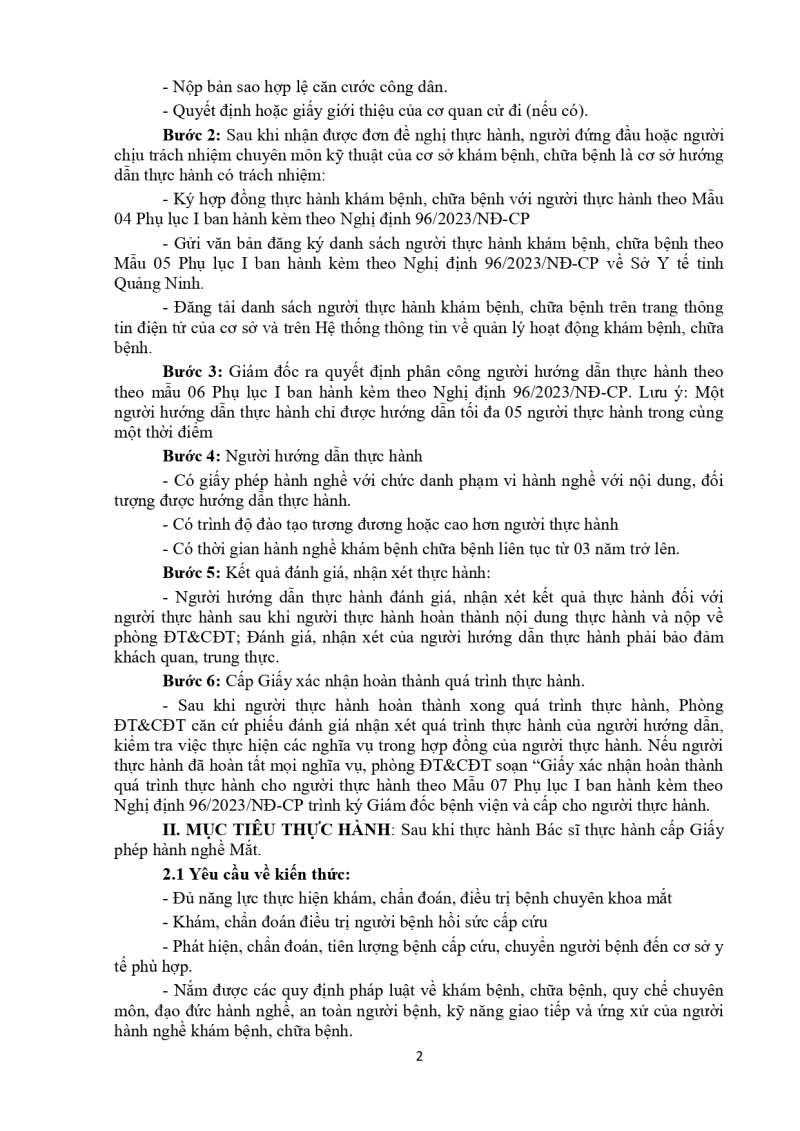 Nội dung thực hành khám bệnh, chữa bệnh đối với bác sĩ cấp giấy phép hành nghề phạm vi hành nghề chuyên khoa Mắt 2026/03/05 03:56
