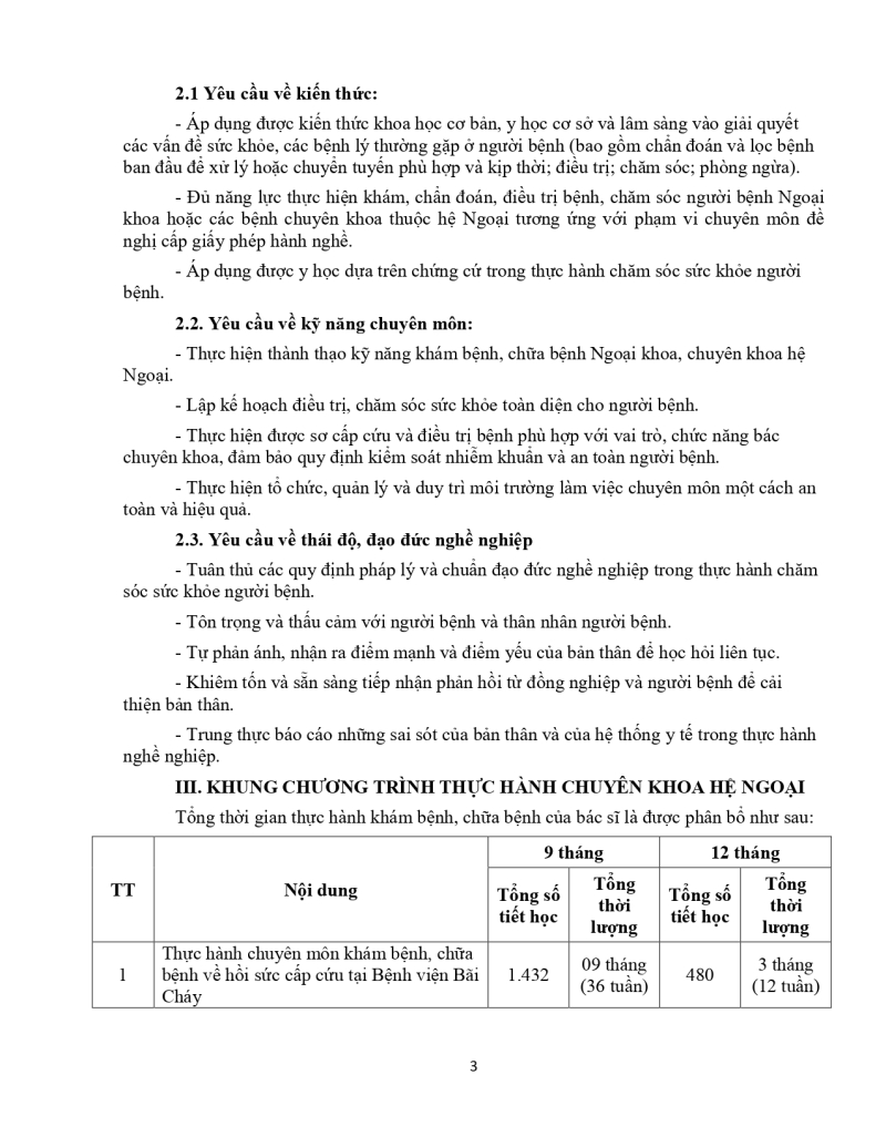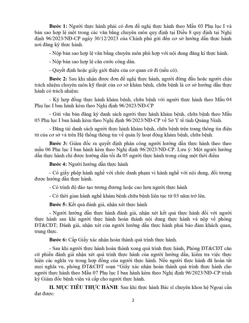 Nội dung thực hành khám bệnh, chữa bệnh đối với bác sĩ cấp giấy phép hành nghề phạm vi hành nghề chuyên khoa ngoại 2026/03/03 06:37