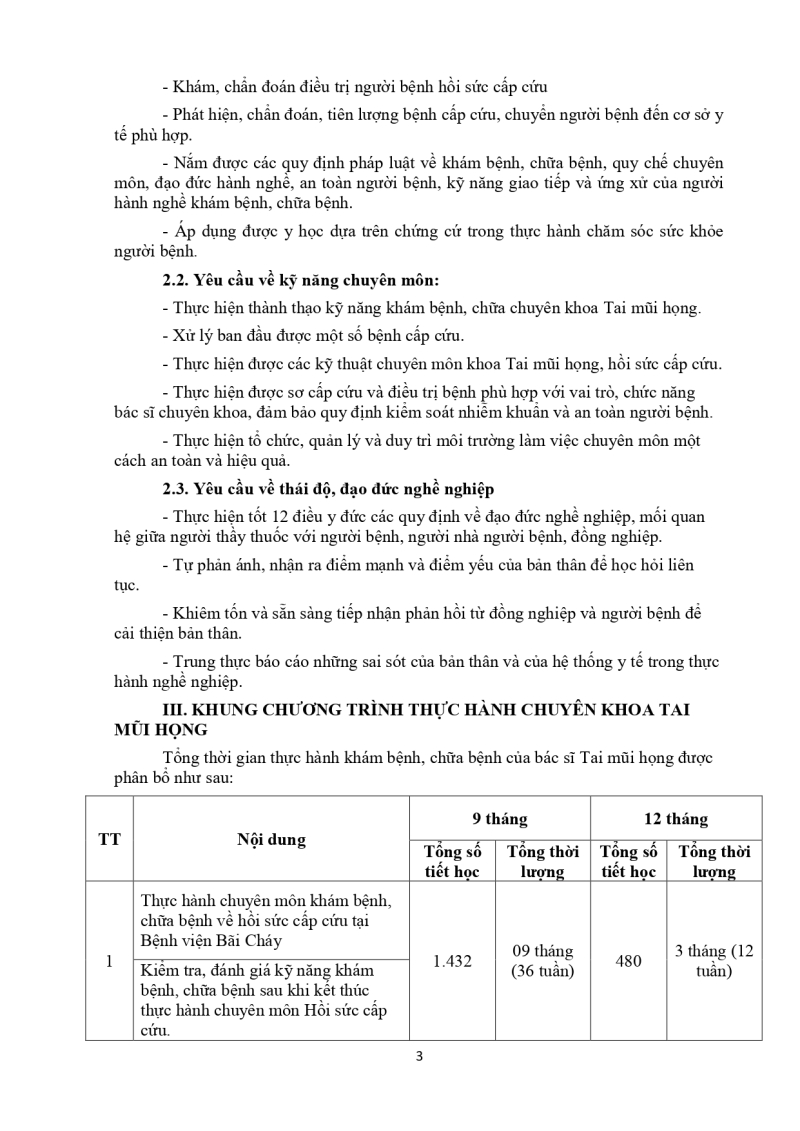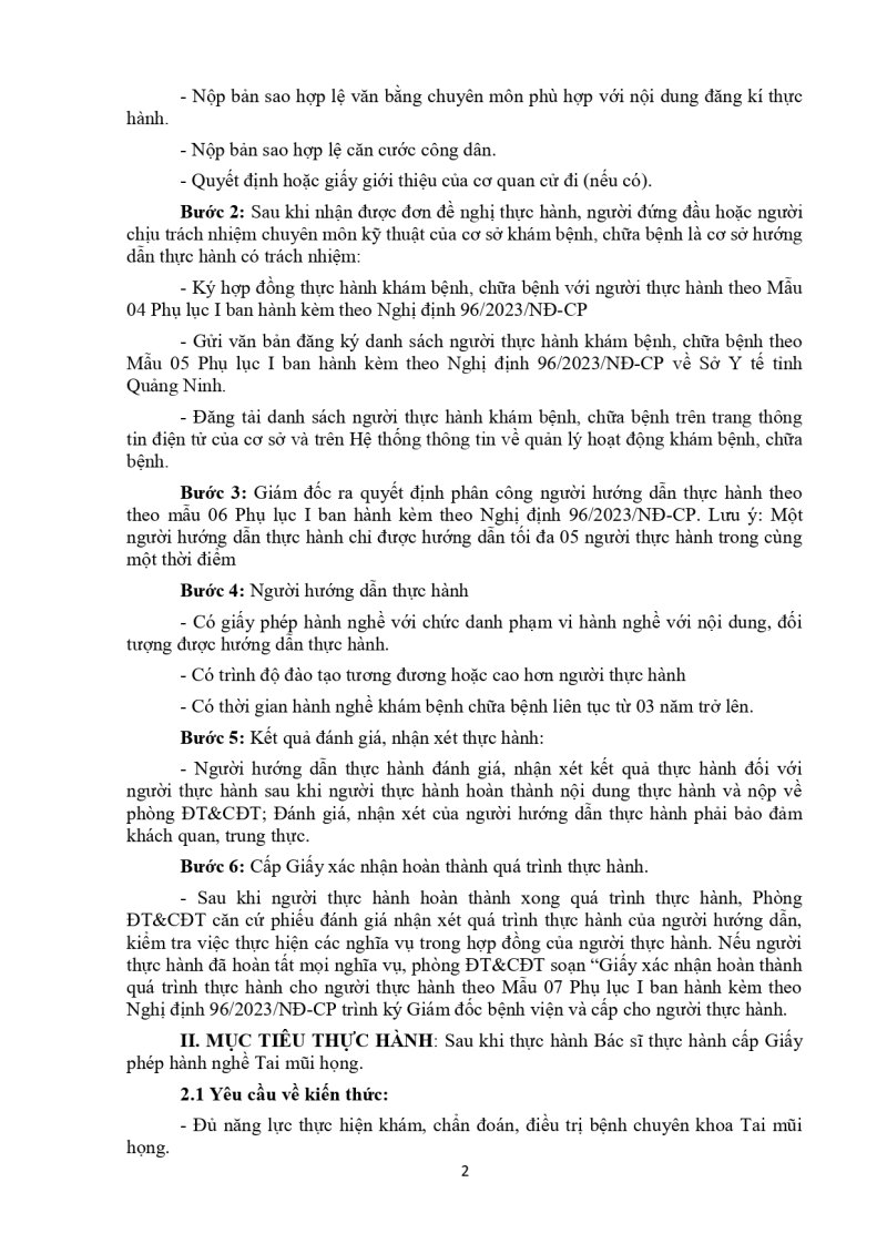 Nội dung thực hành khám bệnh, chữa bệnh đối với bác sĩ cấp giấy phép hành nghề phạm vi hành nghề chuyên khoa TMH 2026/03/05 03:53