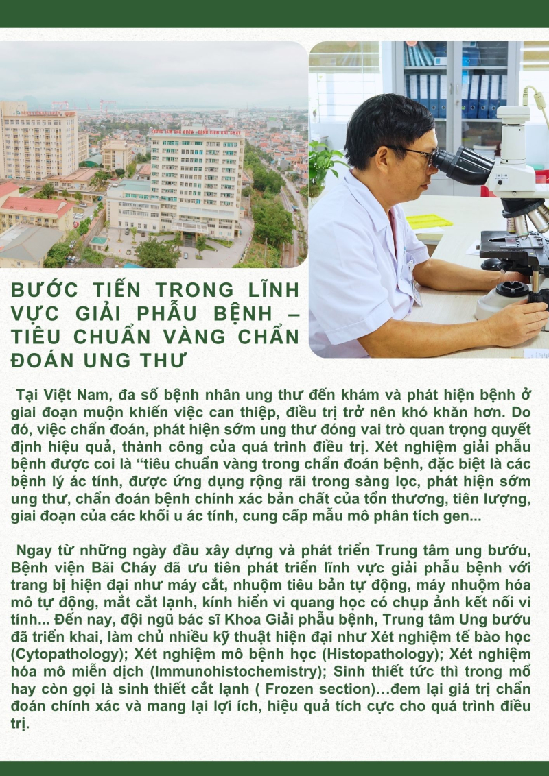 Không ngừng nâng cao năng lực chuyên môn, ứng dụng những kỹ thuật y khoa tiên tiến trong chẩn đoán và điều trị hiệu quả bệnh lý ung thư, những năm qua, Bệnh viện Bãi Cháy đã trở thành địa chỉ khám chữa bệnh uy tín, tin cậy cho người dân tại tỉnh và khu vực Đông Bắc đất nước.