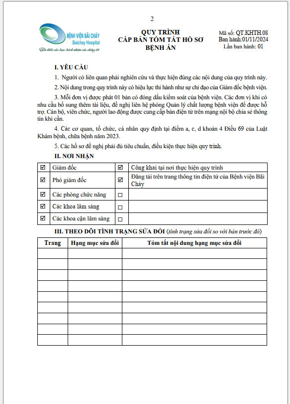 Quy trình cấp bản tóm tắt hồ sơ bệnh án