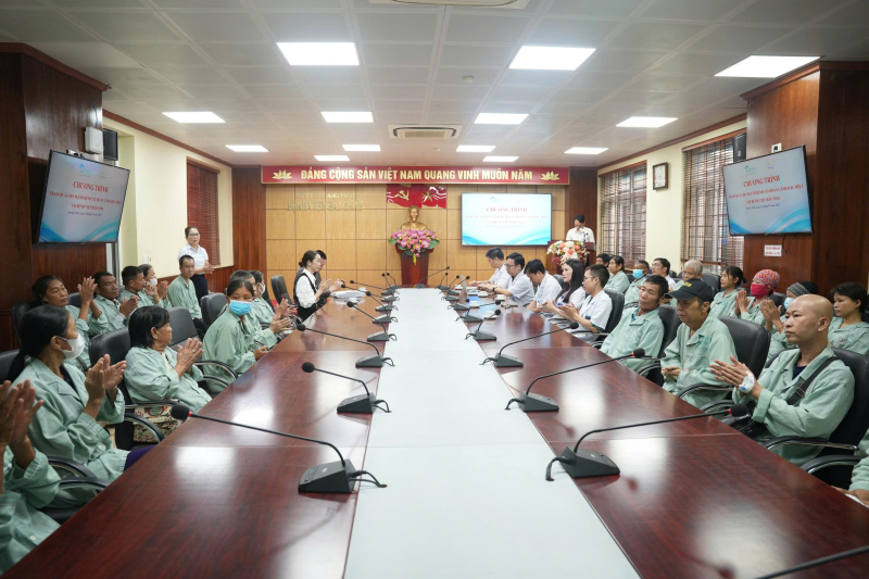 Dự chương trình trao tặng quà có Ths.BS Trần Thanh Luận – Phó Giám đốc Bệnh viện Bãi Cháy, BSCKII Hoàng Minh Tuân – Trưởng phòng Quản lý chất lượng, Điều dưỡng CKI Hà Thị Dung – Trưởng phòng điều dưỡng, BSCKI Bạch Vân Đông – Trưởng Khoa Thận lọc máu cùng đại diện các cán bộ phụ trách các khoa ung bướu, người bệnh được trao tặng quà. Đại diện Công ty TNHH Xuất Nhập Khẩu Thủy Sản Hải Long Vương có ông Hoàng Văn Cương – Phó Giám đốc, bà Hoàng Hoa Xuân – Kế toán.