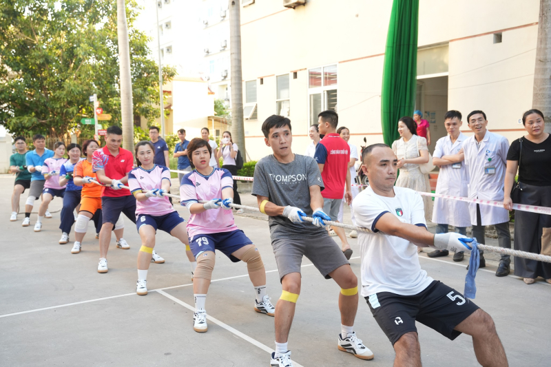 Tiếp nối thành công của môn thi Nhảy bao bố, môn thi Kéo co diễn ra vào chiều ngày 20/10 trong không khí sôi nổi, hứng khởi chào mừng Ngày phụ nữ Việt Nam. Với tinh thần nhiệt thành, quyết tâm chiến thắng, 5 đội đến từ các khối công đoàn Hành chính, Nội, Ngoại, Ung bướu, Cận lâm sàng đã mang đến những màn trình diễn sức mạnh đoàn kết bền bỉ, dẻo dai “ngang sức ngang tài”. Giải kéo co nhận được sự ủng hộ, cổ vũ nhiệt tình đến từ các cổ động viên là các cán bộ, bác sĩ, nhân viên y tế, tạo được ấn tượng đẹp, lôi cuốn khán giả theo dõi.