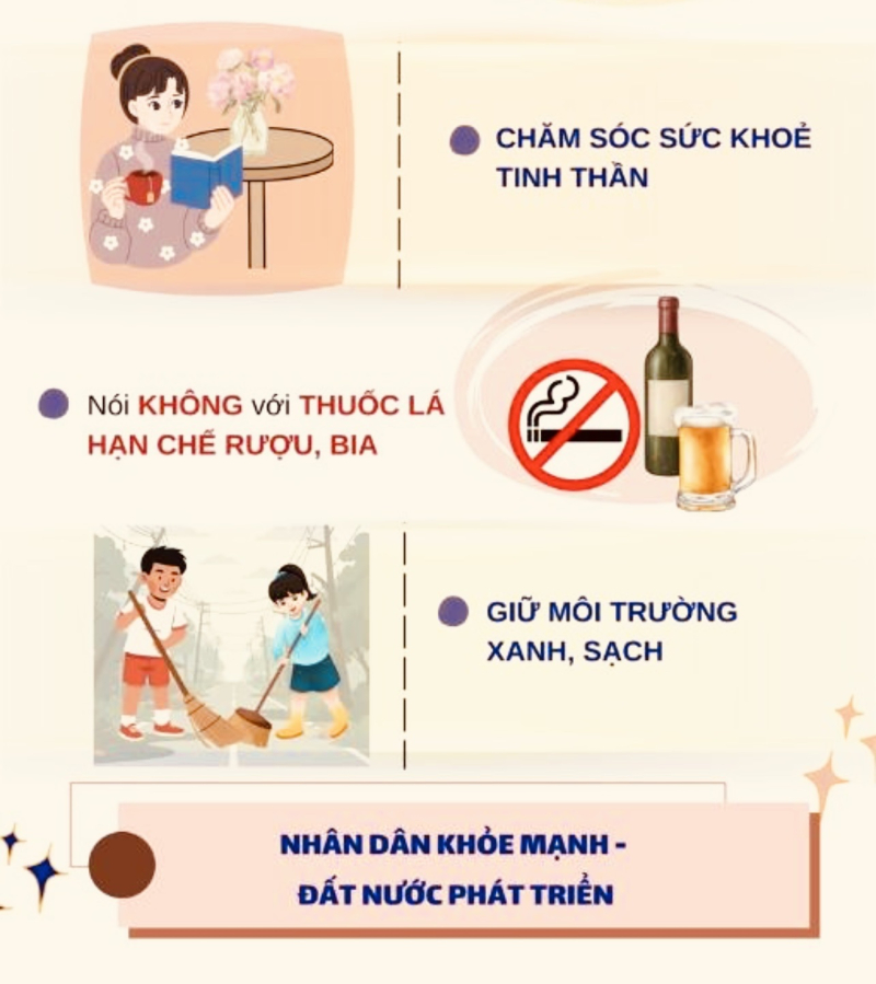 Hưởng ứng Ngày Sức khỏe toàn dân 07/4 không chỉ là hoạt động mang tính tuyên truyền mà còn là lời kêu gọi mỗi người dân nâng cao ý thức tự chăm sóc sức khỏe, chủ động phòng bệnh và xây dựng lối sống lành mạnh. Việc nâng cao nhận thức, thay đổi hành vi và xây dựng lối sống lành mạnh sẽ góp phần giảm thiểu nguy cơ mắc bệnh, nâng cao chất lượng cuộc sống và hướng tới một cộng đồng khỏe mạnh, bền vững.