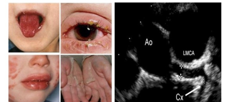 Khi mắc Kawasaki điển hình trẻ có biểu hiện như: sốt cao kéo dài hơn 5 ngày, một số trường hợp khác có thể kéo dài 3-4 tuần; viêm kết mạc (mắt sung huyết đỏ, thường không chảy dịch, gỉ), môi đỏ, lưỡi đỏ nổi gai, phát ban đỏ toàn thân, hạch góc hàm hoặc dưới cằm… Nếu không được điều trị kịp thời, bệnh có thể gây biến chứng tim mạch nguy hiểm đến tính mạng của trẻ như: phình giãn động mạch vành tim làm tăng nguy cơ hình thành cục máu đông, dẫn đến hậu quả nhồi máu cơ tim; hoặc hẹp tắc động mạch vành, thiếu máu cơ tim, suy vành mãn tính.