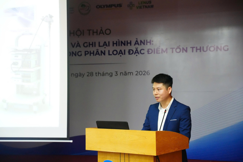 Với chuyên đề “Phân loại đặc điểm tổn thương bằng NBI và ống soi phóng đại: Nhận diện mạch máu & bề mặt niềm mạc”, TS. BS. Phạm Châu - Bệnh viện Quân Y 103 tập trung làm rõ vai trò của nội soi ánh sáng dải hẹp (NBI) kết hợp ống soi phóng đại trong phân loại đặc điểm tổn thương đường tiêu hóa. Báo cáo nhấn mạnh việc nhận diện các biến đổi vi mạch và cấu trúc bề mặt niêm mạc là yếu tố then chốt giúp phân biệt tổn thương lành tính và ác tính.