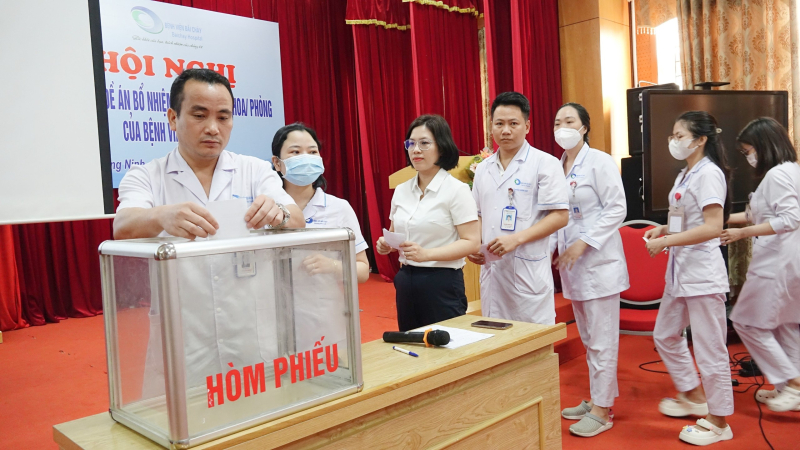 Kết thúc phần trình bày đề án, Hội nghị đã tiến hành lấy phiếu giới thiệu tín nhiệm cho 02 nhân sự bổ nhiệm chức vụ lãnh đạo, quản lý các khoa/phòng. Kết quả thẩm định đề án và lấy phiếu giới thiệu tín nhiệm 02 ứng viên đều đạt tỷ lệ cao. Đây là cơ sở để Bệnh viện hoàn thiện các bước bổ nhiệm tiếp theo, đảm bảo tuân thủ theo đúng quy định.