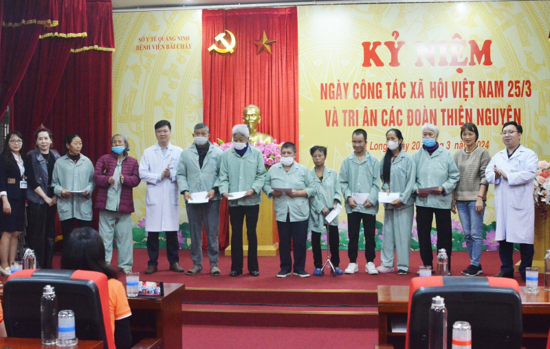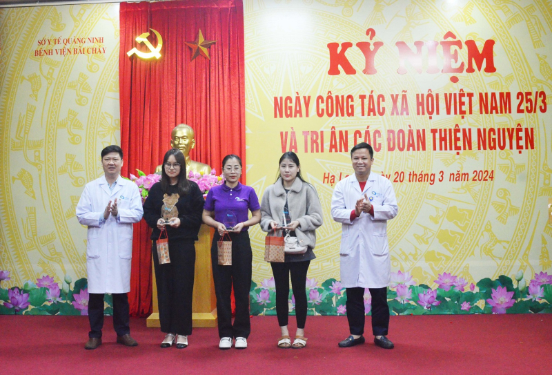Nhân dịp này, Bệnh viện Bãi Cháy đã tặng kỷ niệm chương cùng những món quà tri ân các Đoàn thiện nguyện. Đồng thời tiếp sức nghị lực, san sẻ những gánh nặng với người bệnh, Bệnh viện Bãi Cháy phối hợp cùng các Đoàn thiện nguyện Bình An, Tâm Trí Thiện, Tâm Hoa Sen trao tặng 64 suất quà với tổng trị giá 22 triệu đồng cho các bệnh nhân có hoàn cảnh khó khăn, mắc bệnh hiểm nghèo đang điều trị nội trú tại Bệnh viện.