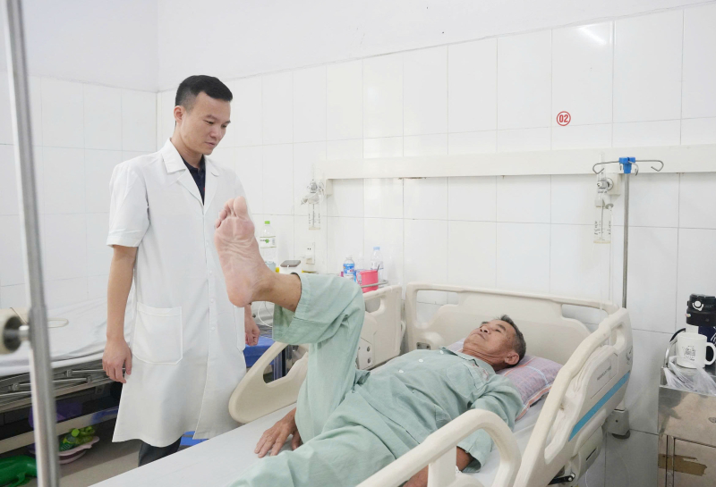 Ths.BS Giáp Hùng Mạnh – Trưởng Khoa Thần kinh -VLTL -PHCN thăm khám cho người bệnh sau can thiệp