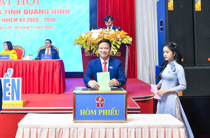 Bỏ phiếu bầu ban chấp hành LĐLĐ tỉnh Quảng Ninh khoá XV, nhiệm kỳ 2025 - 2030.