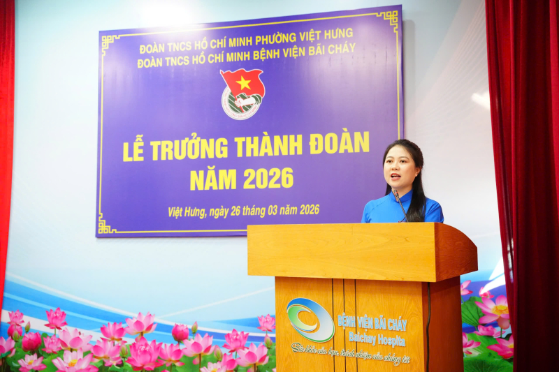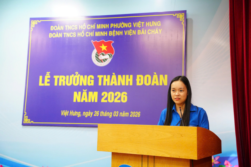 Phát biểu tại chương trình, đồng chí Đỗ Ánh Quyên – Chủ tịch Hội Liên hiệp Thanh niên – Phó bí thư Đoàn phường Việt Hưng nhấn mạnh Lễ trưởng thành Đoàn không chỉ là dấu mốc quan trọng trong quá trình rèn luyện của mỗi đoàn viên mà còn là dịp để nhìn lại những đóng góp tích cực của tuổi trẻ bệnh viện trong suốt thời gian qua. Với tinh thần “Bản lĩnh – Trí tuệ – Đoàn kết – Tình nguyện”, đoàn viên thanh niên Bệnh viện Bãi Cháy đã không ngừng nỗ lực trong công tác chuyên môn, tích cực tham gia các hoạt động vì cộng đồng, góp phần xây dựng hình ảnh người cán bộ y tế trẻ năng động, trách nhiệm và giàu lòng nhân ái.