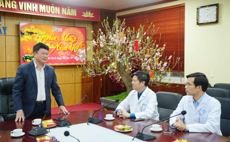 Tiếp đoàn có Ths.BS Trần Thanh Luận - Phó Giám đốc Bệnh viện, BSCKII Hoàng Văn Quyết - Phó Giám đốc Bệnh viện cùng lãnh đạo các khoa, phòng chức năng của bệnh viện. Tại buổi gặp mặt, đồng chí Nguyễn Ngọc Sơn đã gửi lời chúc mừng năm mới an khang, thịnh vượng tới toàn thể cán bộ, y bác sĩ, nhân viên y tế; ghi nhận và biểu dương những nỗ lực, đóng góp quan trọng của Bệnh viện Bãi Cháy trong công tác chăm sóc, bảo vệ sức khỏe nhân dân trên địa bàn tỉnh.