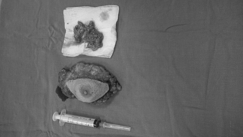 Khối u và hạch nách được cắt bỏ triệt để từ phẫu thuật