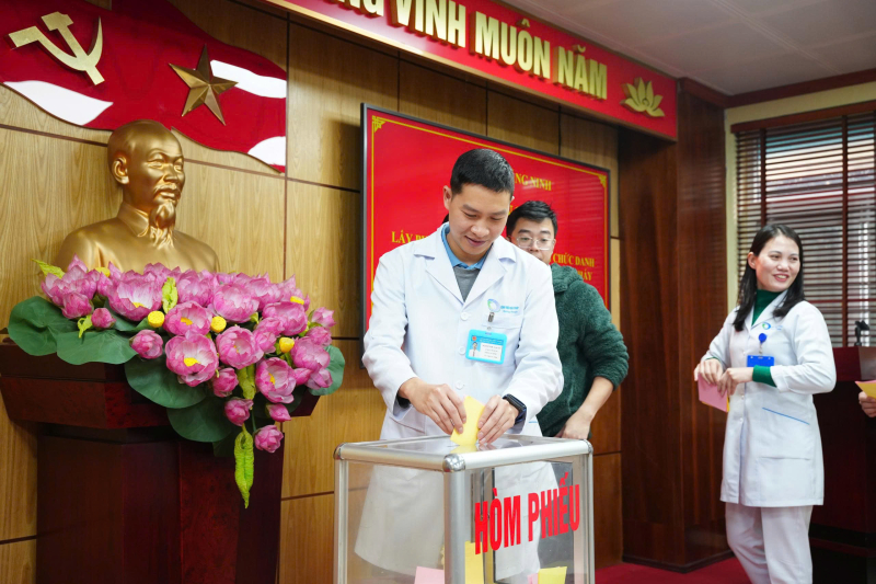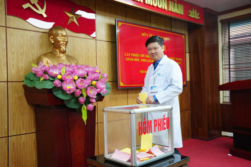 Tại hội nghị, các đại biểu đã tiến hành lấy phiếu tín nhiệm đối với Thầy thuốc Nhân dân, BSCKII Lê Ngọc Dũng – Giám đốc Bệnh viện Bãi Cháy và Ths.BS Trần Thanh Luận – Phó Giám đốc Bệnh viện Bãi Cháy theo đúng trình tự, quy trình, bảo đảm dân chủ, khách quan, công khai và minh bạch.