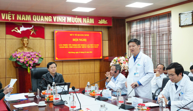 Chiều ngày 23/01/2026, Bệnh viện Bãi Cháy tổ chức Hội nghị lấy phiếu tín nhiệm trong quy trình bổ nhiệm lại chức danh Giám đốc và Phó Giám đốc Bệnh viện Bãi Cháy theo quy định hiện hành. Hội nghị do đồng chí Bùi Mạnh Hùng – Quyền Giám đốc Sở Y tế Quảng Ninh chủ trì.