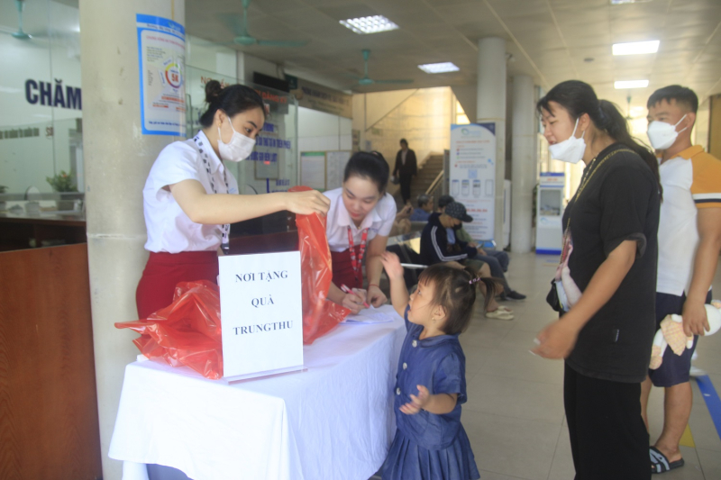 Nhân dịp này, bác sĩ CKII Đinh Thị Lan Oanh – Phó Giám đốc Bệnh viện cùng các đồng chí lãnh đạo Công đoàn, Đoàn thanh niên, Tổ công tác xã hội của Bệnh viện đã trao tặng 200 suất quà trung thu cho các bệnh nhi đến thăm khám, điều trị nội trú, ngoại trú và 1 suất quà trị giá 300.000 đồng cho cho bệnh nhi có hoàn cảnh đặc biệt.