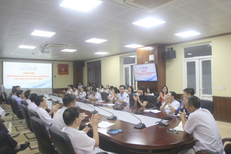 Sáng ngày 29/10, Bệnh viện Bãi Cháy tổ chức trao Quyết định về việc nghỉ hưu để hưởng chế độ bảo hiểm xã hội cho BSCKII. Tô Thị Thúy Hằng, Trưởng khoa Thần kinh-VLTL-PHCN của Bệnh viện.