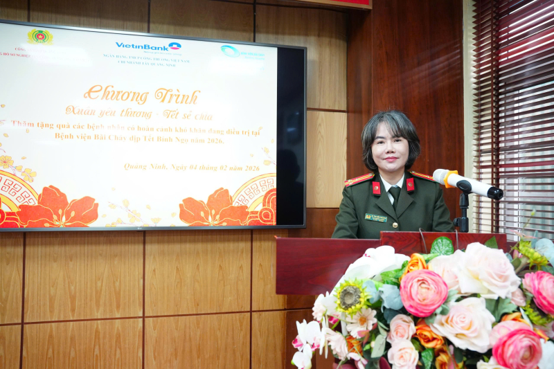 Đại diện đơn vị phối hợp, đồng chí Trưởng phòng Hồ sơ nghiệp vụ – Công an tỉnh Quảng Ninh chia sẻ mong muốn chương trình trao tặng quà cho người bệnh có hoàn cảnh đặc biệt, khó khăn sẽ góp phần chung tay cùng ngành y tế chăm lo tốt hơn cho người bệnh có hoàn cảnh khó khăn, để không ai bị bỏ lại phía sau trong dịp Tết. Đây cũng là hoạt động thể hiện tinh thần trách nhiệm vì cộng đồng của lực lượng Công an nhân dân và các đơn vị đồng hành.