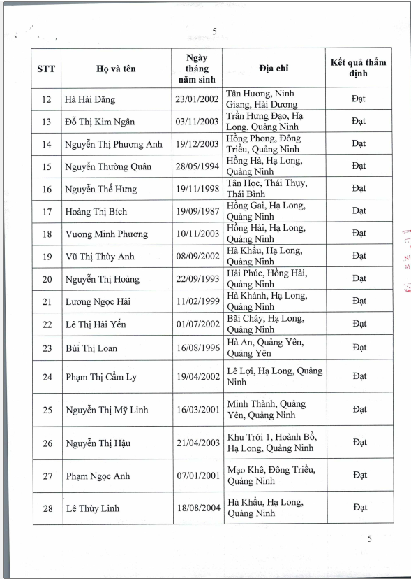 Kết quả kiểm tra phiếu đăng ký dự tuyển hợp đồng lao động đợt III của Bệnh viện Bãi Cháy