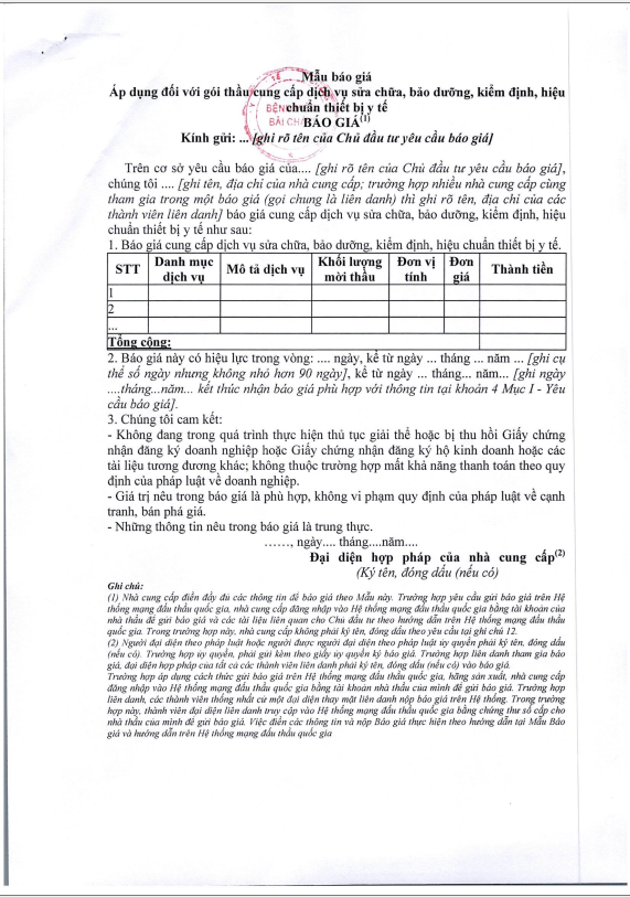 Thông báo số 2336 về nhu cầu mua sắm ấn chỉ phục vụ công tác chuyên môn tại bệnh viện bãi cháy năm 2026