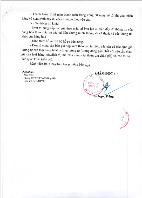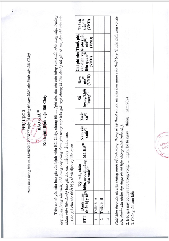 Thông báo số 2336 về nhu cầu mua sắm ấn chỉ phục vụ công tác chuyên môn tại bệnh viện bãi cháy năm 2026