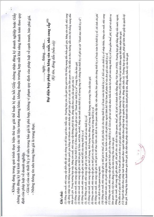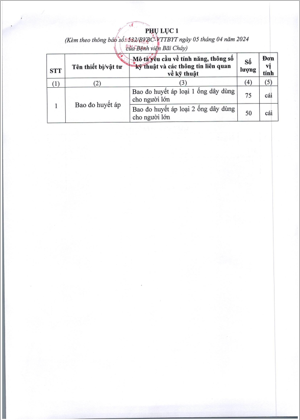 Thông báo số 532 về nhu cầu mua bao huyết áp