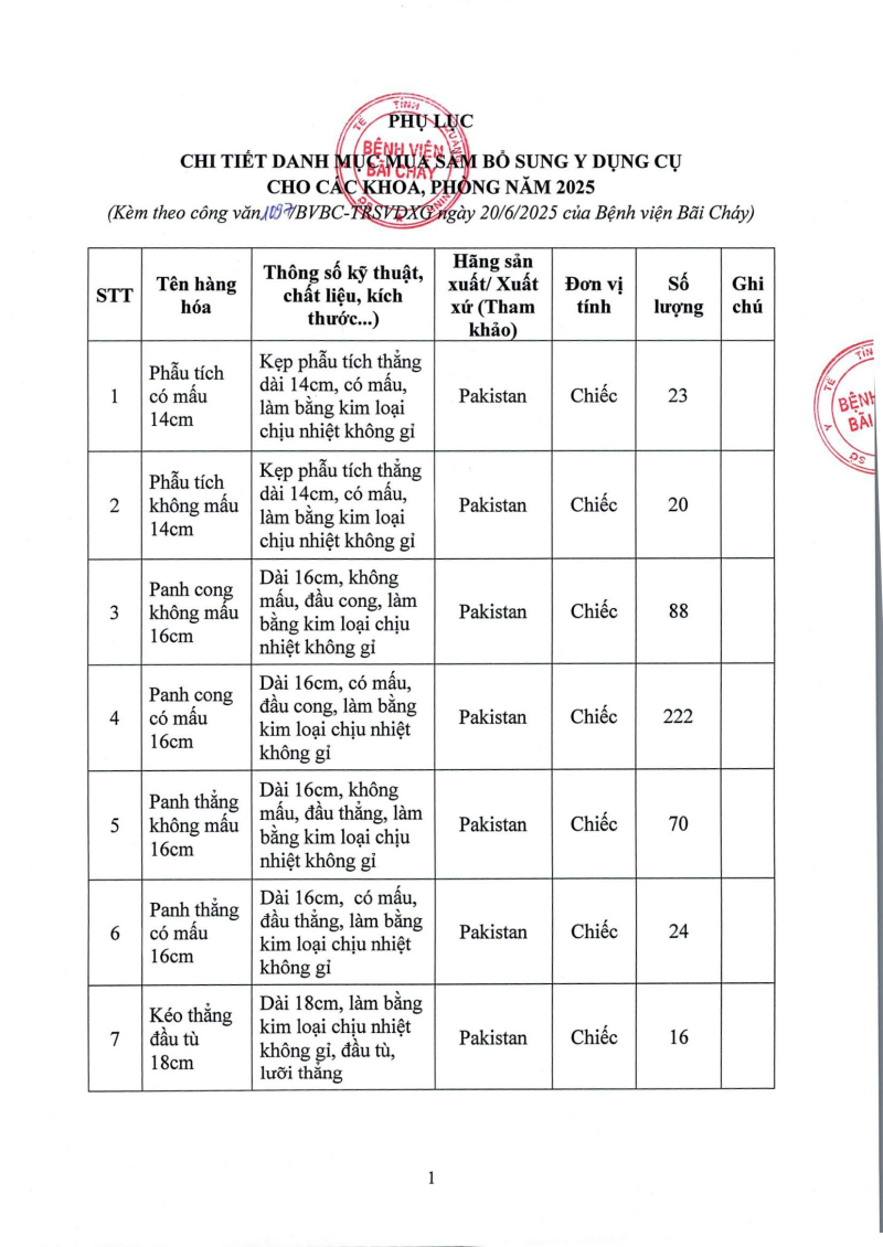 Thông báo 1097 nhu cầu mua sắm bổ sung y dụng cụ cho các khoa phòng năm 2025 2025/06/20 07:43 Thông báo 1097 nhu cầu mua sắm bổ sung y dụng cụ cho các khoa phòng năm 2025