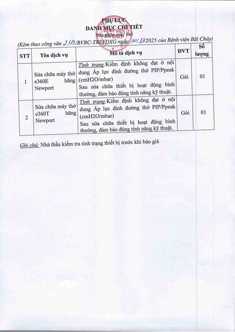 Thông báo 2119 nhu cầu sửa chữa máy thở
