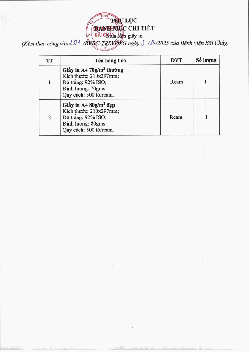 Thông báo 2331 nhu cầu mua sắm giấy in
