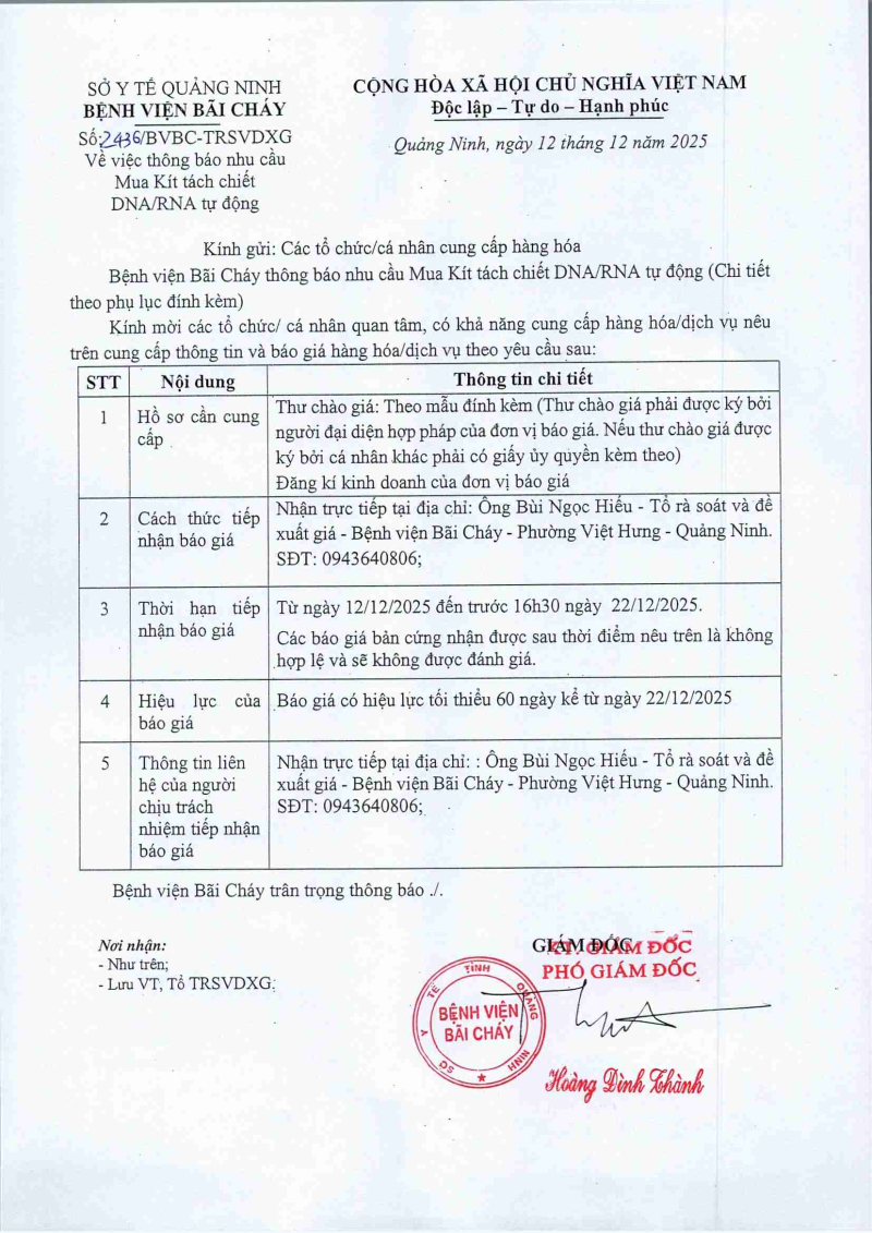 Thông báo nhu cầu mua Kít tách chiết DNA/RNA tự động 2025/12/12 04:34 Thông báo nhu cầu mua Kít tách chiết DNA/RNA tự động