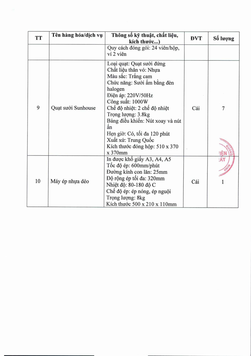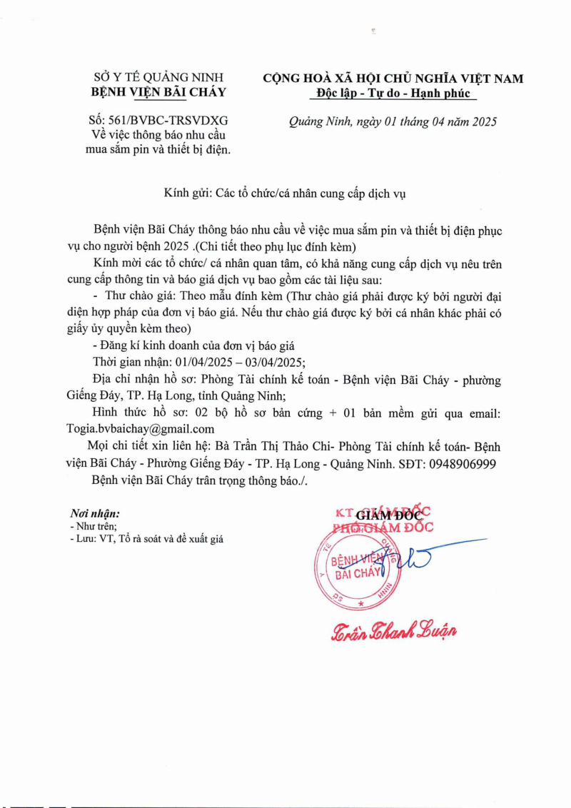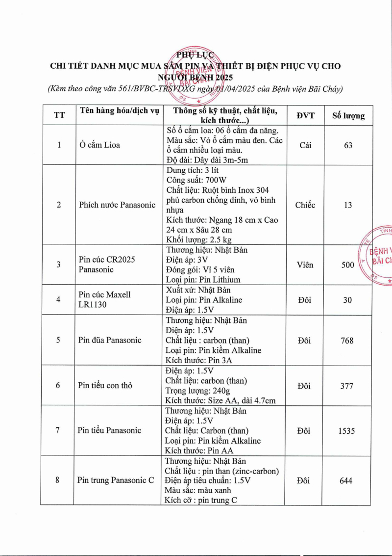 Thông báo nhu cầu mua sắm pin và thiết bị điện