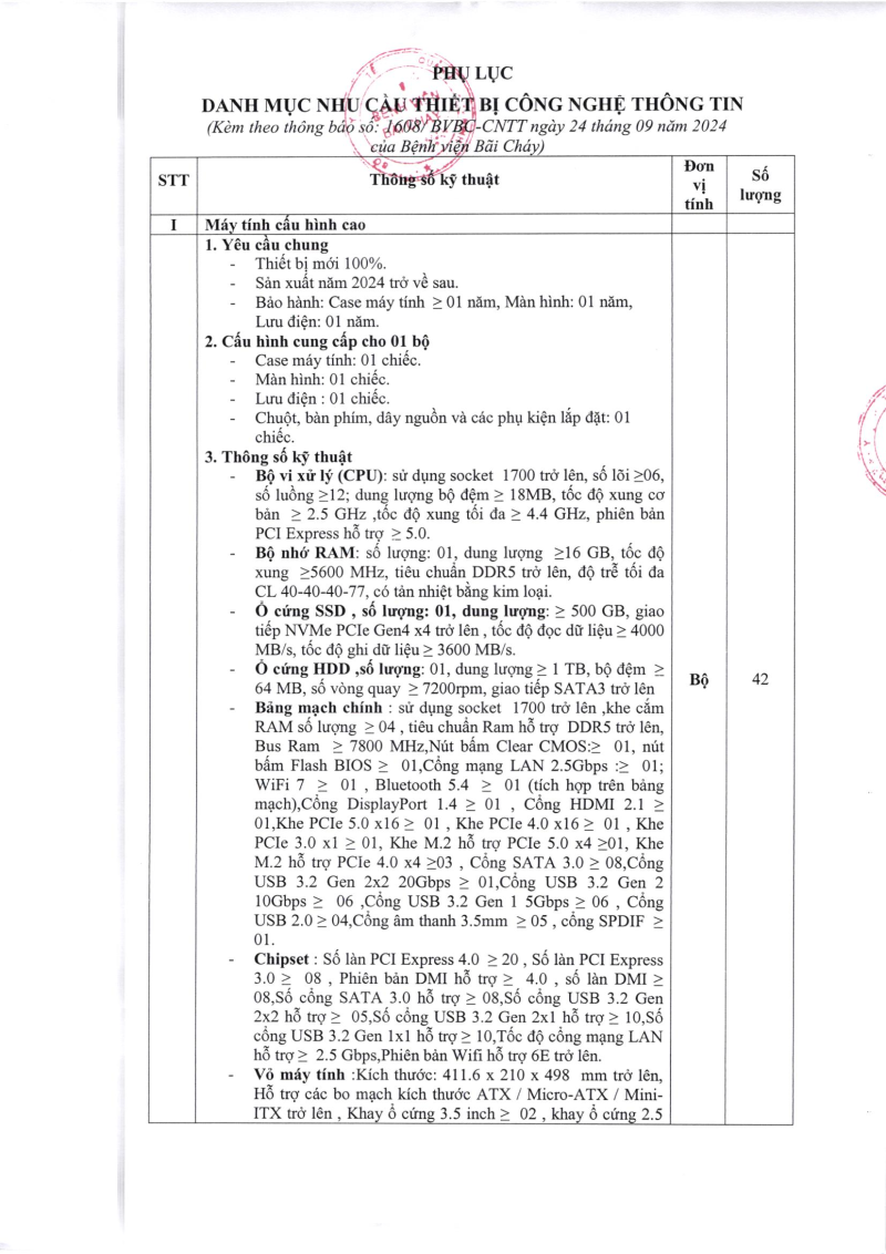 Về việc thông báo như cầu thẩm định giá gói thiết bị Công nghệ thông tin phục vụ công tác khám chữa bệnh năm 2024 2024/09/30 06:36